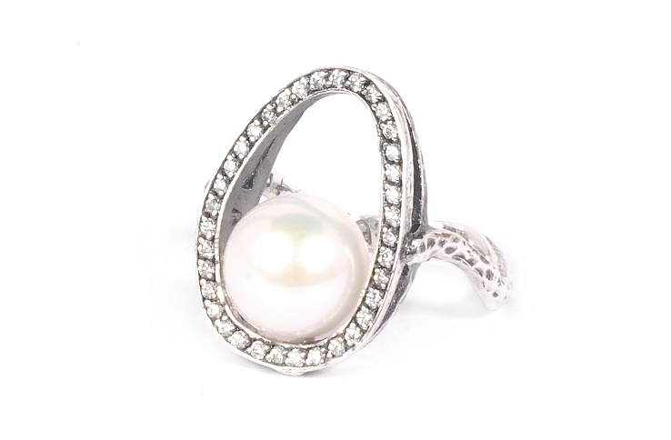 Anillo plata de 925m. con perla cultivada y oval con zirconitas.