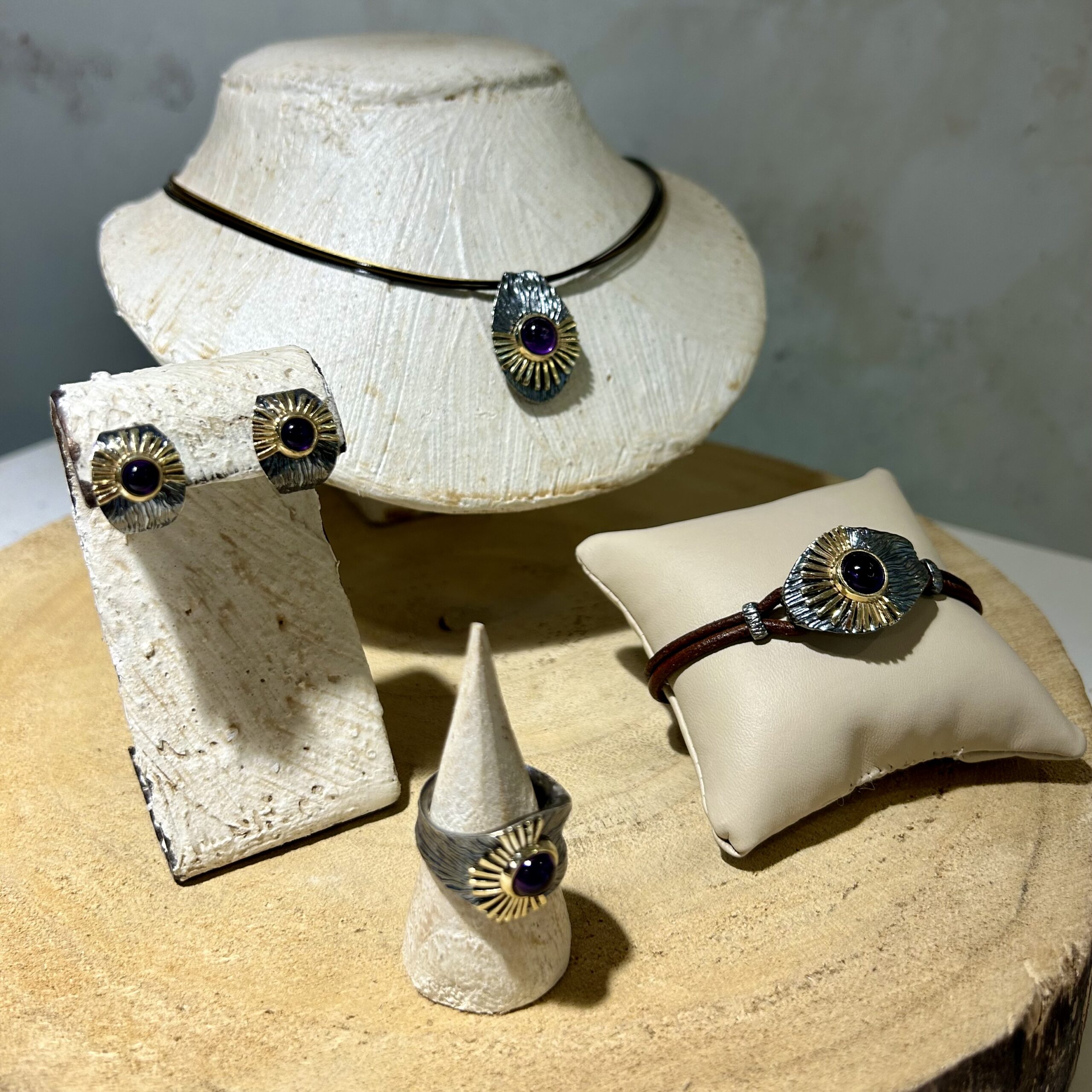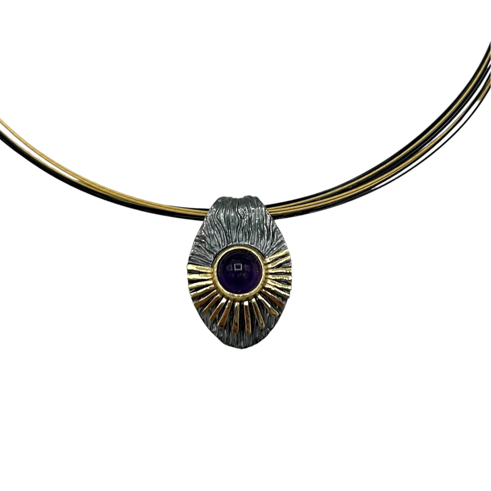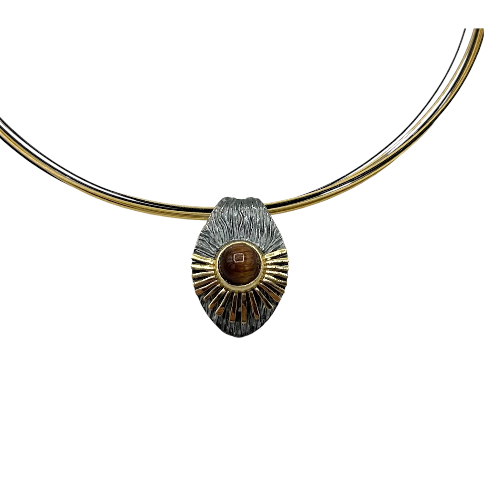 Colgante de Plata de Primera Ley con detalles de oro 9k y cuarzo rutilo. Cables combinados con cierre doble click.