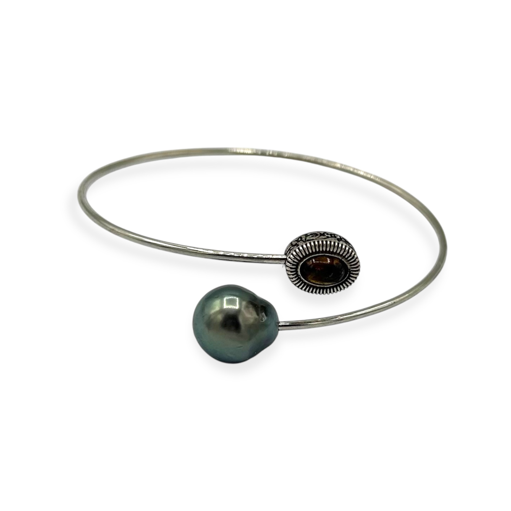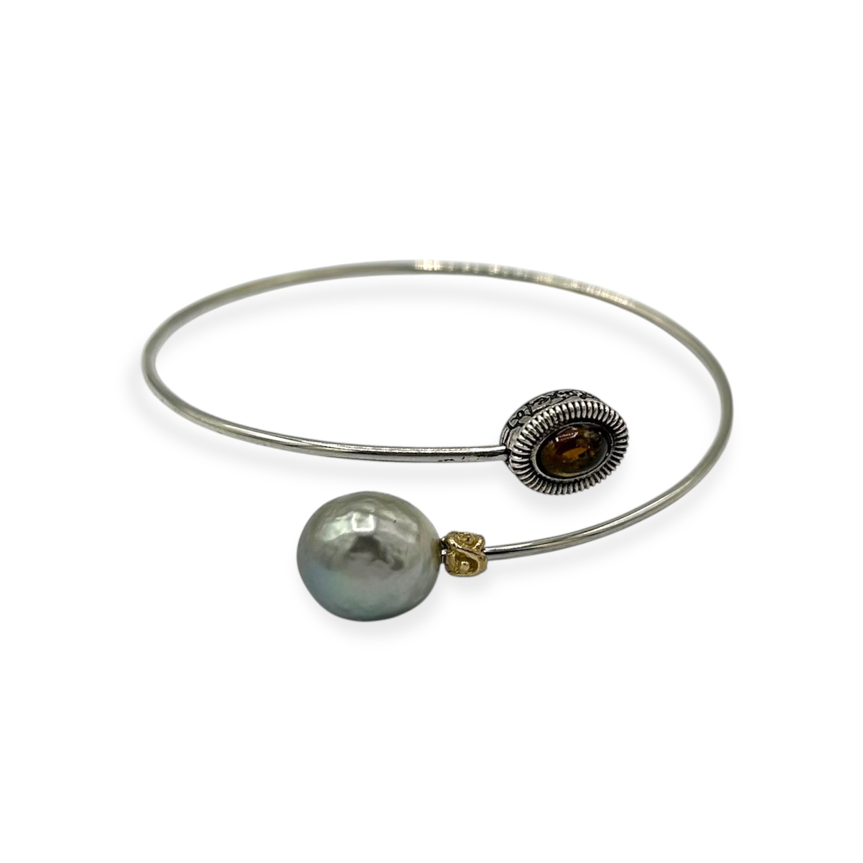 Pulsera doble de plata de primera ley con motivo en oro de 9k, turmalina y perla tahití.